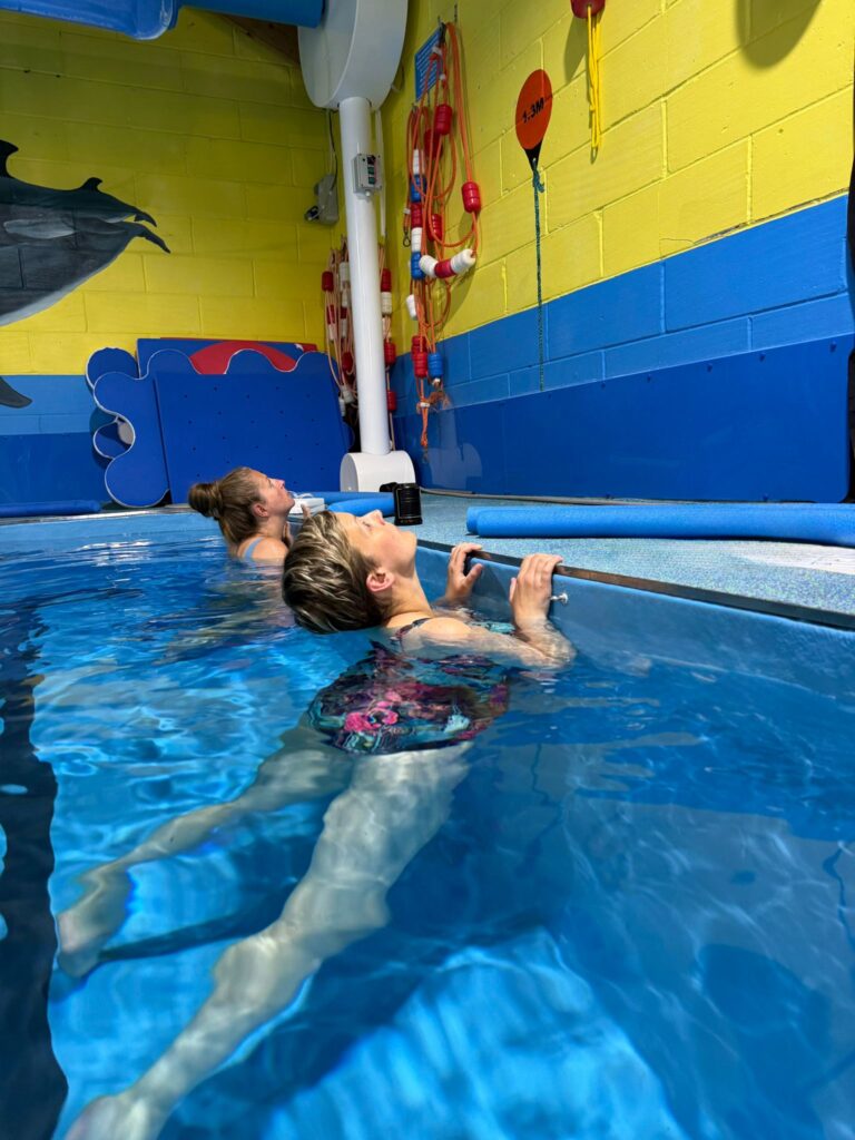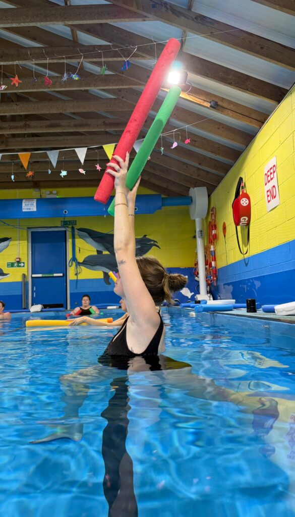 If I had to choose a favourite part of the class, I would honestly say I love it all, but the relaxation at the end holds a special kind of magic and I think most of my ladies would agree! During my own Birthlight training, my tutor, Katy, invited me to experience a floating relaxation.. resting on my back, supported by noodles, allowing my ears to dip just beneath the surface. I’ll admit, I was hesitant at first – there’s something strangely vulnerable about submerging your ears! But once I allowed myself to relax, the sensation was out of this world. The muffled sounds, the gentle support of the water, the weightlessness… it was pure bliss. Now, I always recommend this experience in my own sessions, and recently I had an entire class drifting peacefully around the pool, listening to the quietness of the water around them. Seeing their faces afterwards, calm, and content is priceless – it’s worth getting your hair wet for!